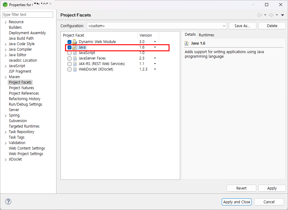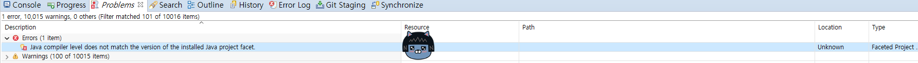 properties > Project Facets > Java 를 자신이 사용하고있는 컴파일러 버전과 맞추어주도록하자!!