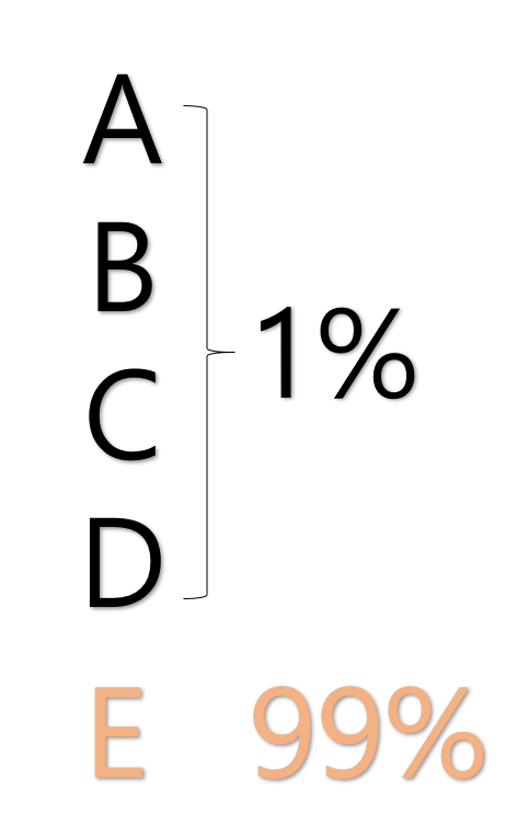 나머지 A, B, C, D는 1% 정도로만 대답!