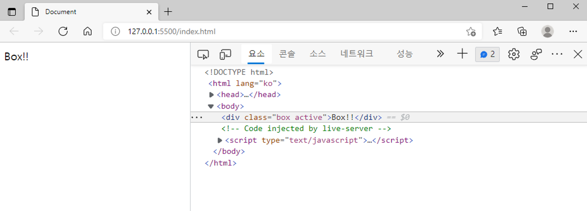 하기 이미지에서 box active 로 바뀜!