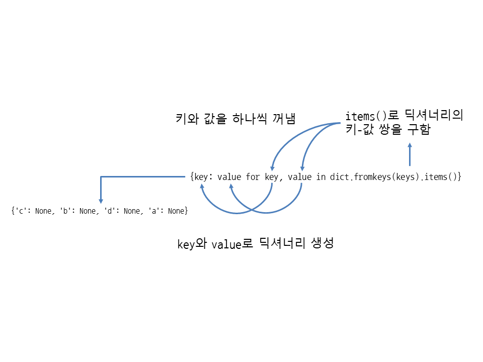 ex. 두 개의 리스트 자료형의 각 요소를 짝지어 딕셔너리 생성