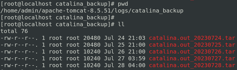 2. 톰캣 설치경로\bin\logShell.sh 실행 후 catalina_backup 폴더에 catalina_해당날짜 로그가 생겼는지 확인